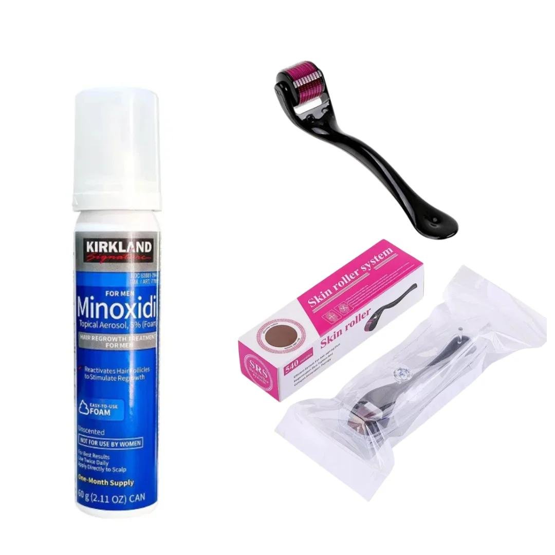 Minoxidil Kirkland 5% Espuma 1 Mes de Tratamiento + Dermaroller Titanio