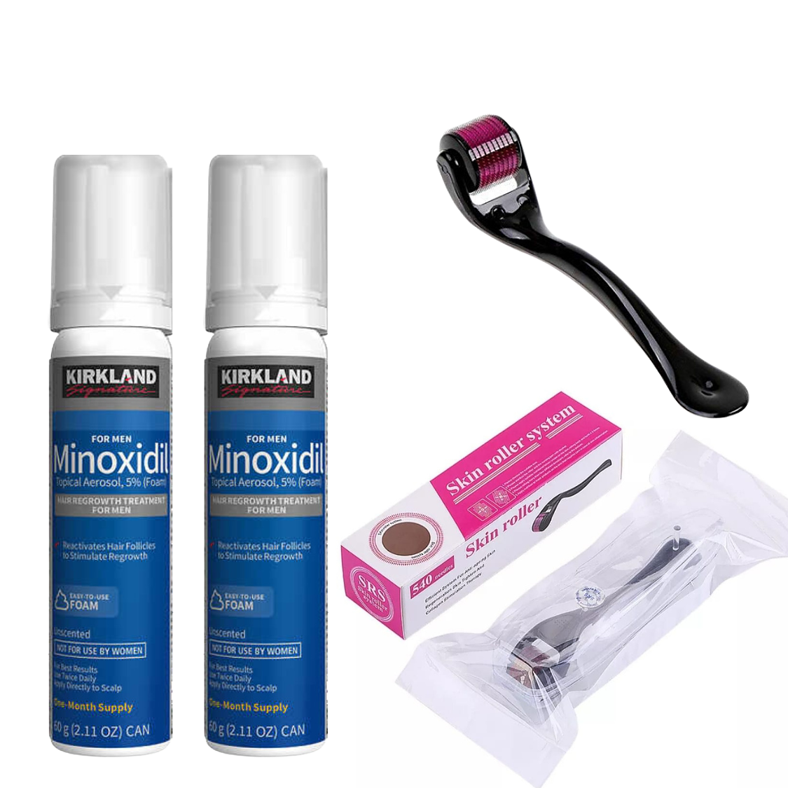 Minoxidil Kirkland 5% Espuma 2 Meses de Tratamiento + Dermaroller